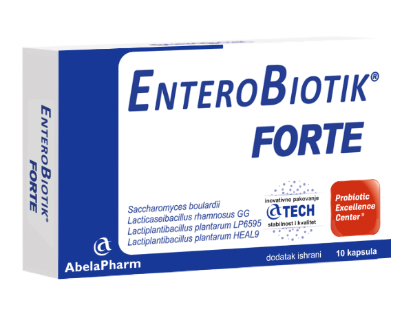 EnteroBiotik® FORTE predstavlja superiornu kombinaciju probiotske gljivice Saccharomyces boulardii i probiotskih bakterija LGG, LP 6595 i LP HEAL9 koje deluju SINERGISTIČKI u održavanju i uspostavljanju normalne funkcije crevne flore.