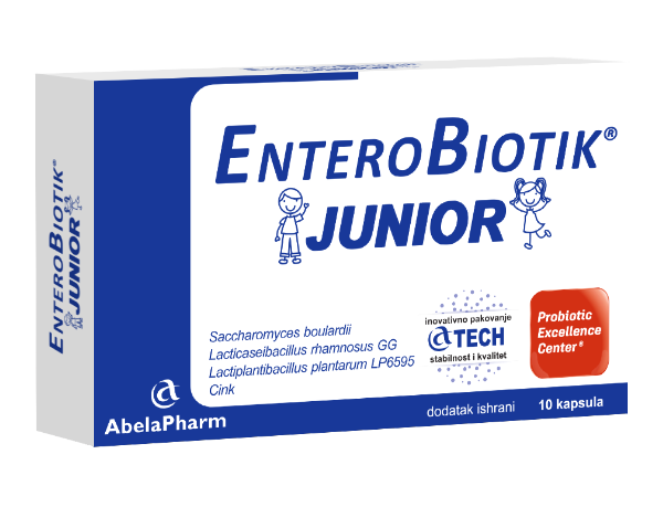 EnteroBiotik® JUNIOR predstavlja jedinstvenu kombinaciju probiotske gljivice Saccharomyces boulardii, probiotskih bakterija LGG, LP 6595 i cinka formulisanu posebno za očuvanje zdravog digestivnog trakta kod deteta.